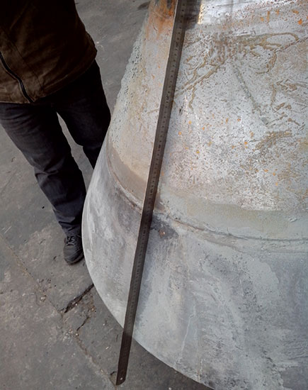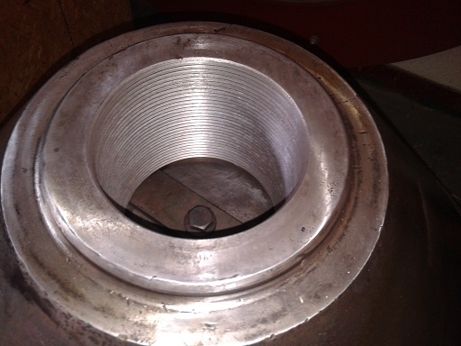 客戶HP500 破碎機(jī)動錐體在更換襯板時發(fā)現(xiàn)鎖緊螺栓不能拆卸,運到我公司維修。由我司技術(shù)人員判定為動錐體內(nèi)螺紋損壞,同時檢查動錐體外錐面,發(fā)現(xiàn)磨損嚴(yán)重。
