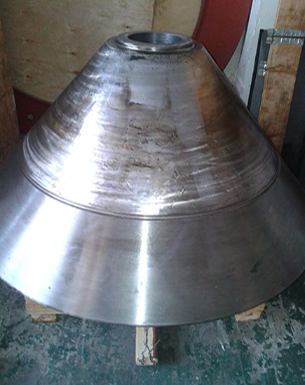 我司按標(biāo)準(zhǔn)維修工藝,對動錐體鑲套,重新加工螺紋;對動錐體外錐面補(bǔ)焊加工。維修后重新安裝球體。