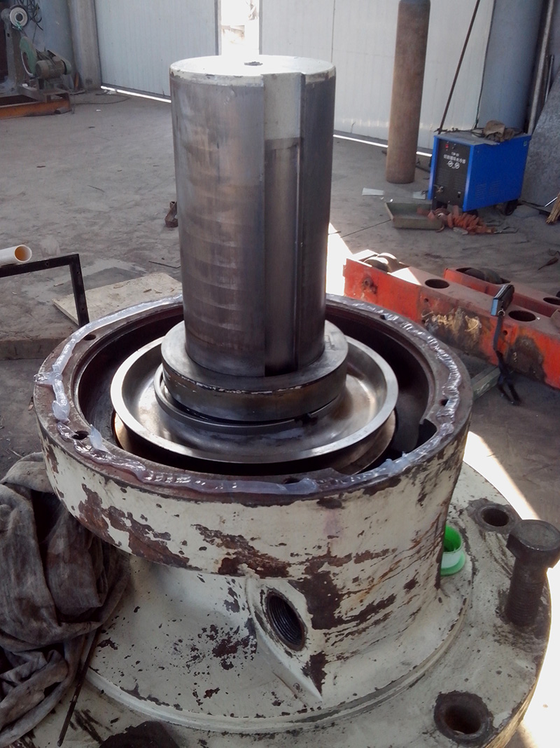 2014-06-09 客戶HP500圓錐破碎機(jī)的水平軸殼體因過(guò)度磨損不能繼續(xù)使用,運(yùn)到我公司維修。由我司技術(shù)人員拆解水平軸總成,更換新的水平軸殼體,銅套,護(hù)板。